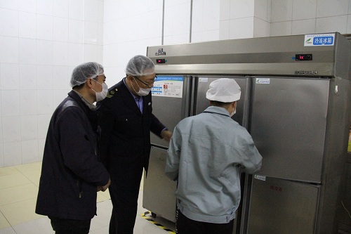 管理小组成员首先走进师生餐厅后厨,现场检查了解食品采购加工流程和餐饮员工培训情况,实地查看储物间、操作间等管理情况,并与师生一起用餐。