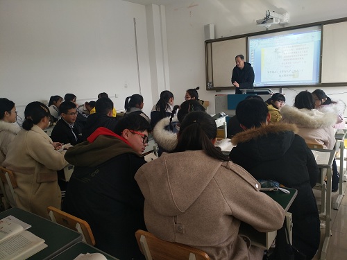 会议上金老师主要从两方面对我校语文教学提出指导意见。一是如何提升学业水平考试过线率。金老师指出,高一主要的教学任务是文言文教学,重点课文要讲懂讲透,学生要掌握重要的实词、虚词、词类活用和特殊句式等文言文知识。针对学业水平考试中的常见题型,教师要有计划的进行专题训练。对于写作,教师可以提供优秀范文和素材,按照开篇点题,每段点题,中间两个事例,结尾扣题的模式组织语言材料。二是如何有效应对高考语文教学。文言文教学依然是重点,学生主要识记120个实词和18个虚词的用法。现代文阅读教学可以根据高考题型确定教学重点,敢于大胆取舍,删减练习题。每月要进行测试,了解学生掌握程度并适时调整教学重难点。