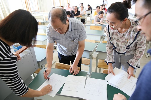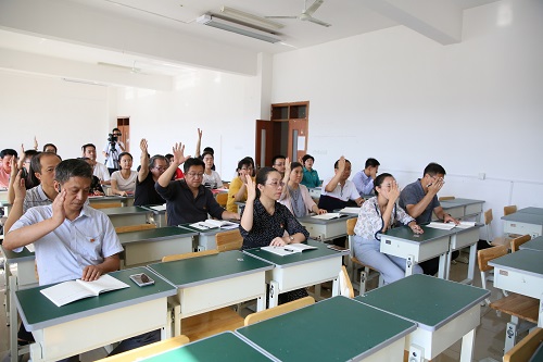 到会党员同志都投出了自己宝贵的一票,经现场计票,许小杰、马维轲、王顺萍等三位同志当选为威海艺术学校第一党支部新一届支部委员会委员。