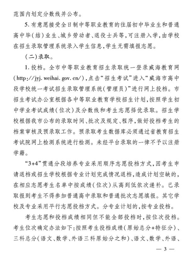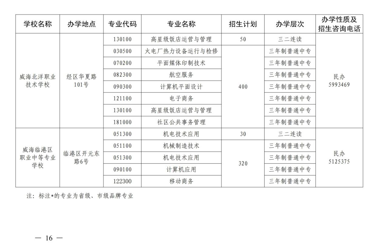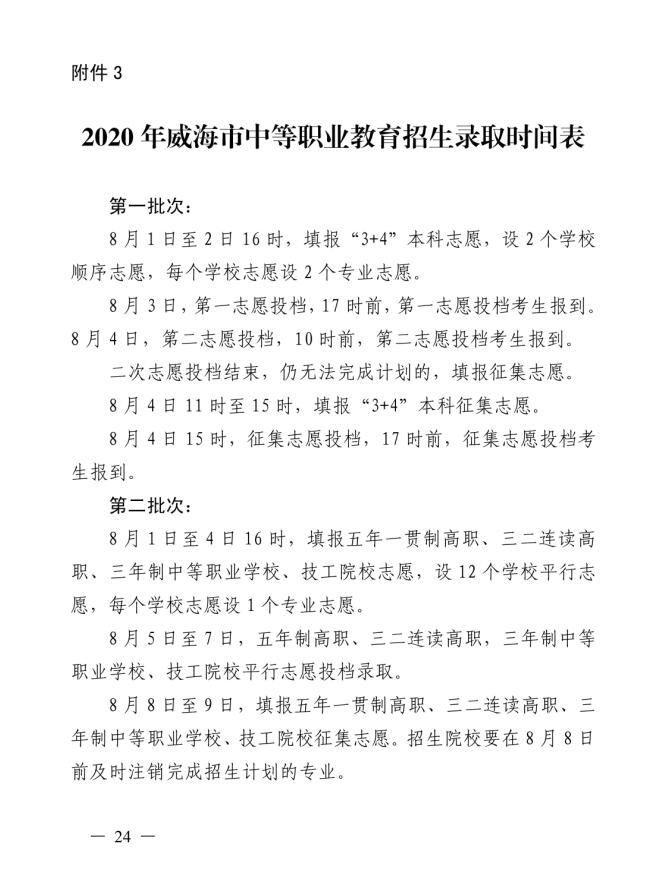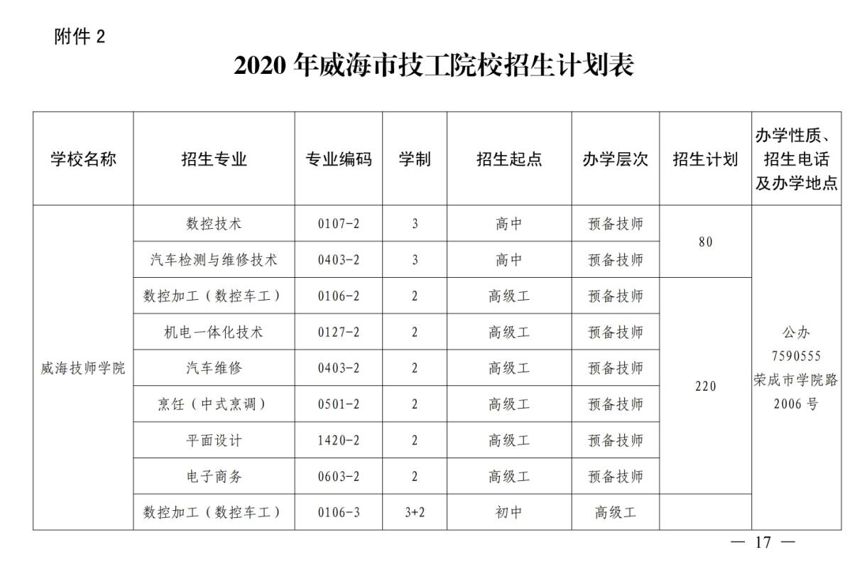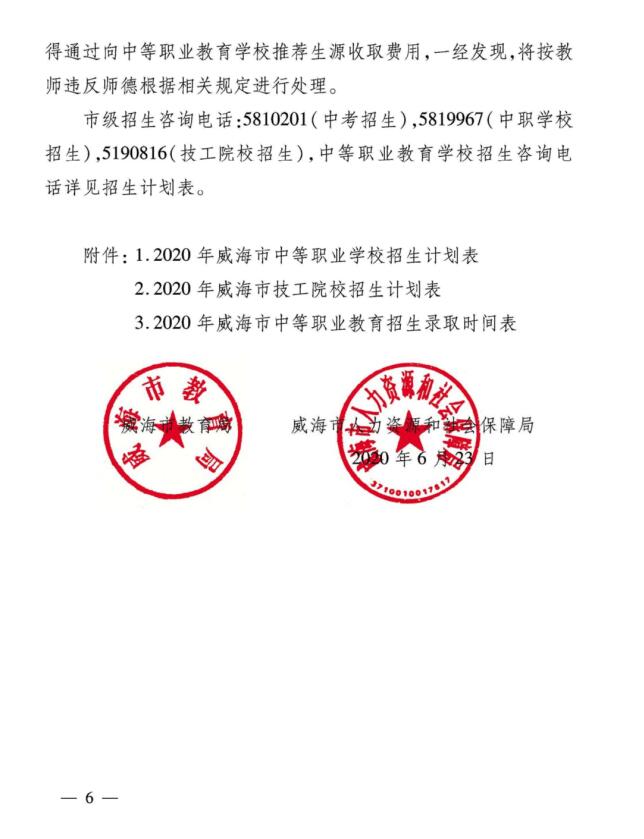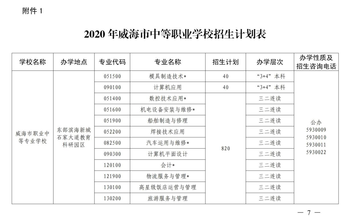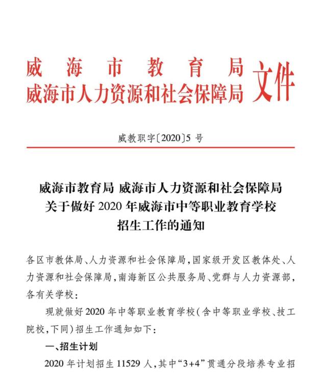 威海市教育局 威海市人力资源和社会保障局关于做好2020年威海市中等职业教育学校招生工作的通知