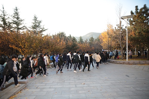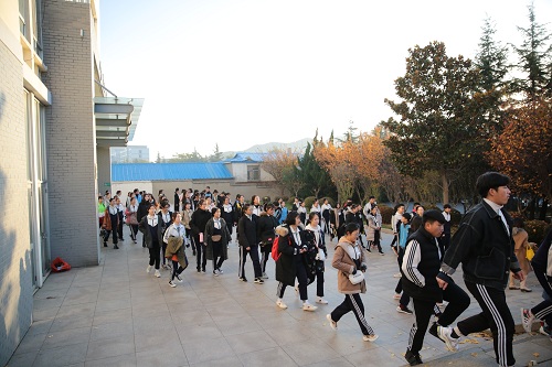 随着警报声响起,学校食堂内所有就餐同学迅速离开座位,在老师的组织下按照既定路线,从食堂撤离到操场指定位置。短短几分钟所有师生全部安全撤离,整个过程井然有序。演练结束后团委进行了总结。